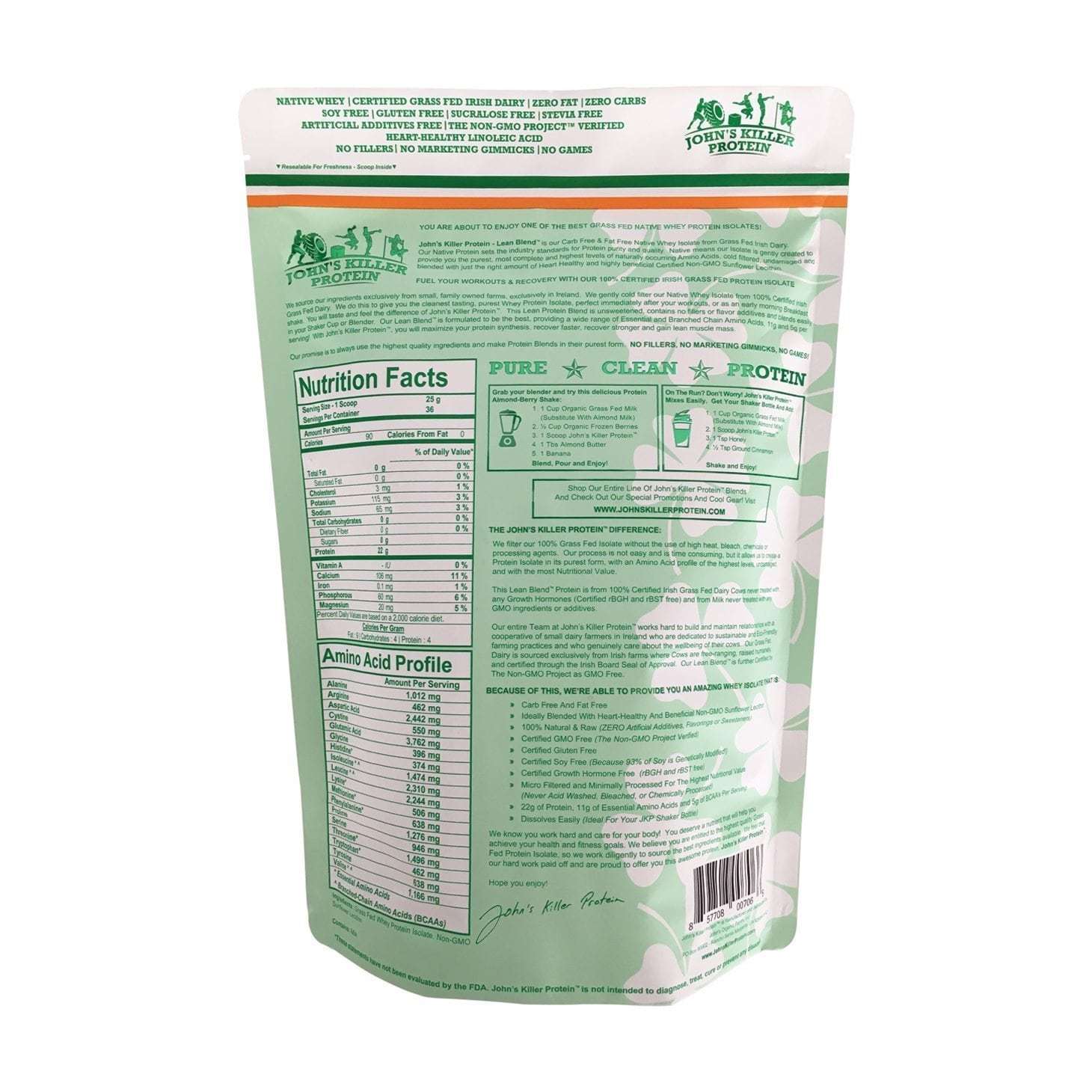 Grass Fed Irish Whey Isolate - Back — JohnsKillerProtein.c…